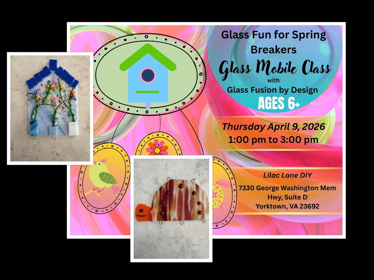 Take this opportunity to have your child and their friends create a glass mobile. I’m hosting a class on April 9, 2026 at 1PM - 3PM. This will be held at Lilac Lane DIY, 7330 George Washington Memorial Hwy Suite D. Come have some fun with your child or just let your child create a Glass Mobile. You can hang it in the yard or window and let the beads catch the light. Ages 6 and up.